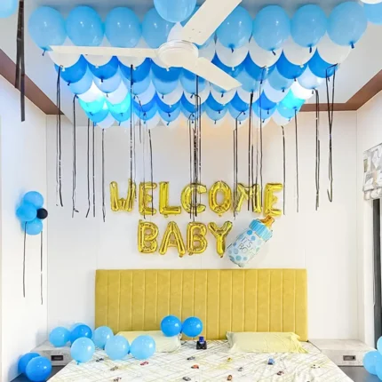 Blue Balloon Themed Welcome Baby Decor Combo