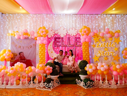 - The beautiful balloon decoration is suitable for a kid’s birthday party celebration. It can also be booked for a baby shower or welcome.