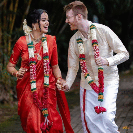 Traditional Jasmine and Rose petals Wedding Garland with Gold Accents