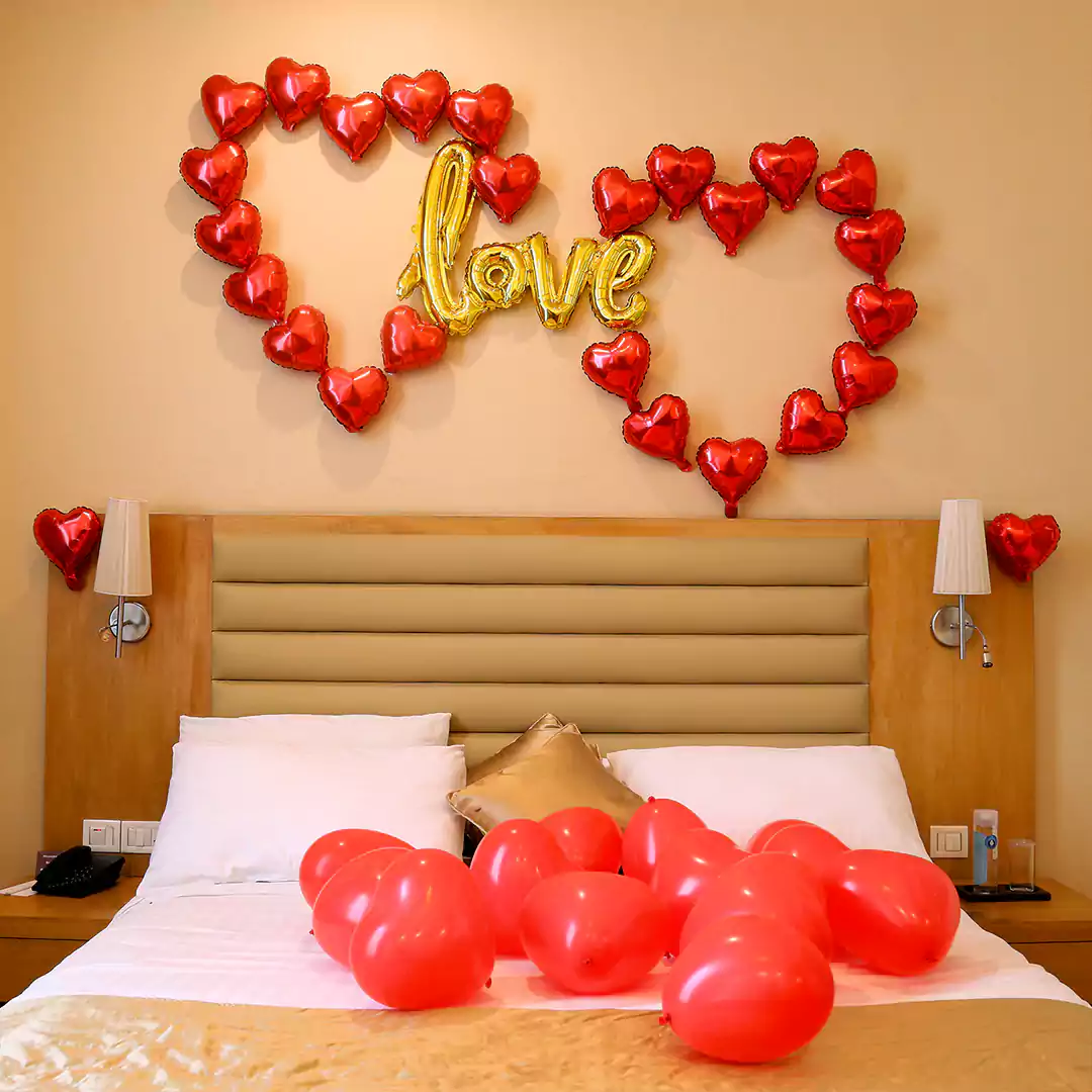 - Glam up your partner’s room with this decent yet elegant decoration containing love balloons. This setup will make your experience wholesome and compassionate. It makes your room look bright and beautiful.