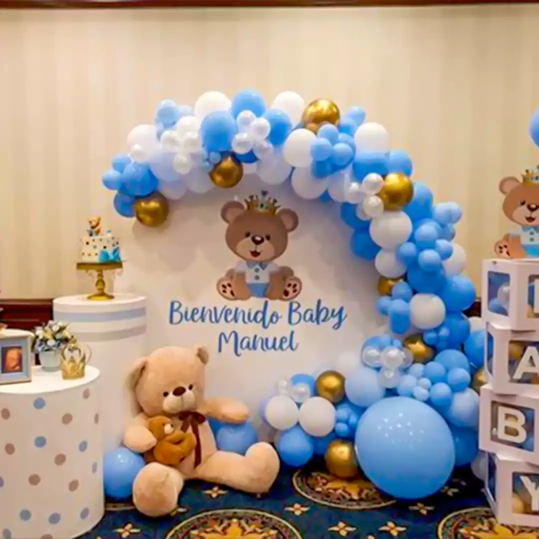 - 1 Balloon Arch with Blue-White Latex Balloons