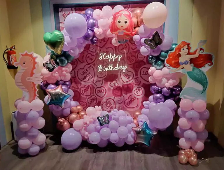 Dive into a magical underwater world with BalloonExhibit’s Mermaid Theme Ring Balloon Decoration for your kid’s birthday! This enchanting setup transforms your space into a whimsical oceanic paradise, perfect for little mermaid fans. Available in Delhi, Noida, Gurgaon, and Faridabad, we make your child’s celebration truly unforgettable.