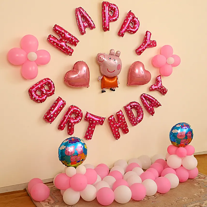 Balloons and your childs favourite cartoon character combined Sounds like the best birthday party. Make your childs birthday special with energetic Peppa pig decoration. This fun balloon decor includes Peppa pig balloons and balloons of various shapes. This blue white themed decor will definitely be popular among all the children.