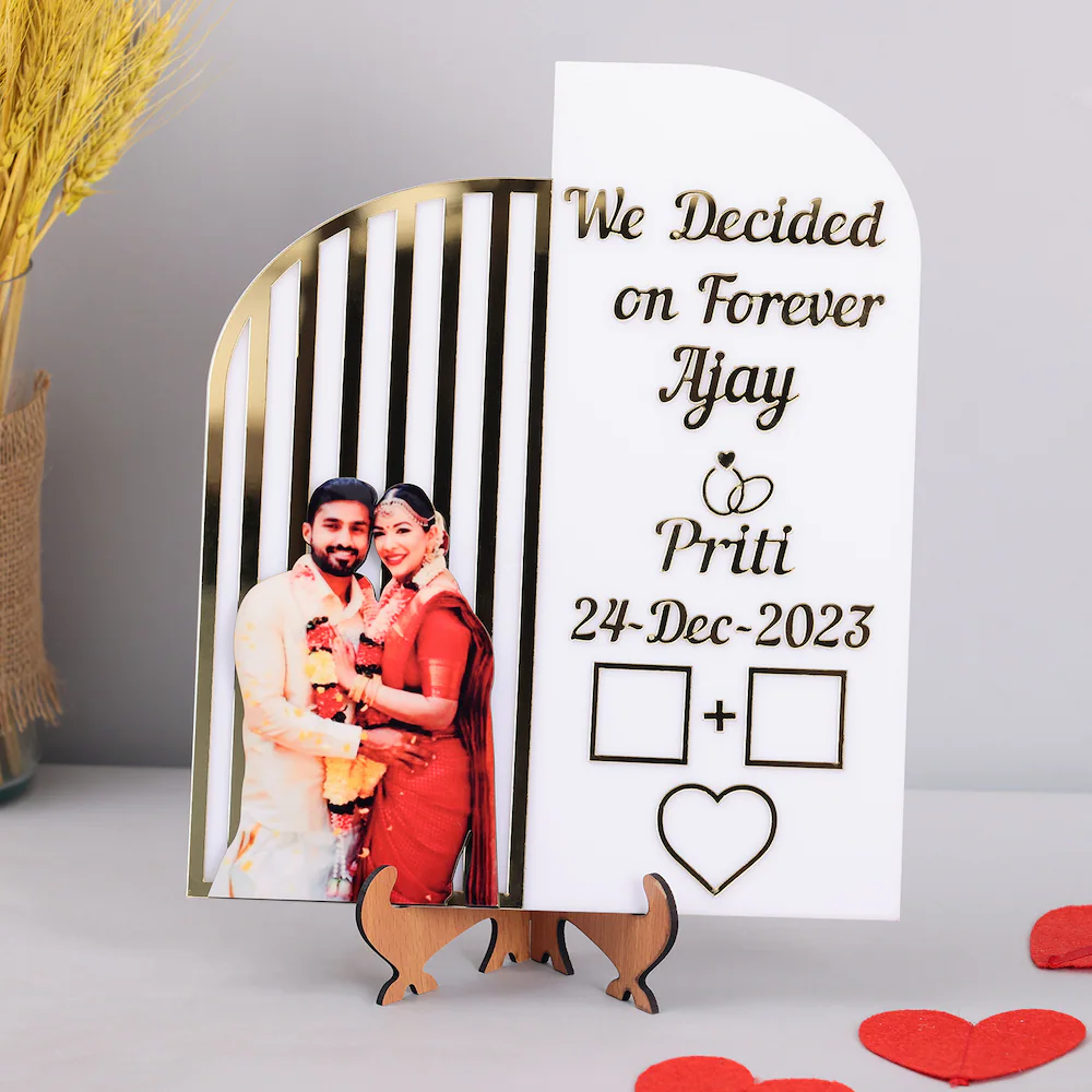 - Its made with White & Golden color acrylic & top of it Personlaized photo cut out, digitally printed on Wood is placed