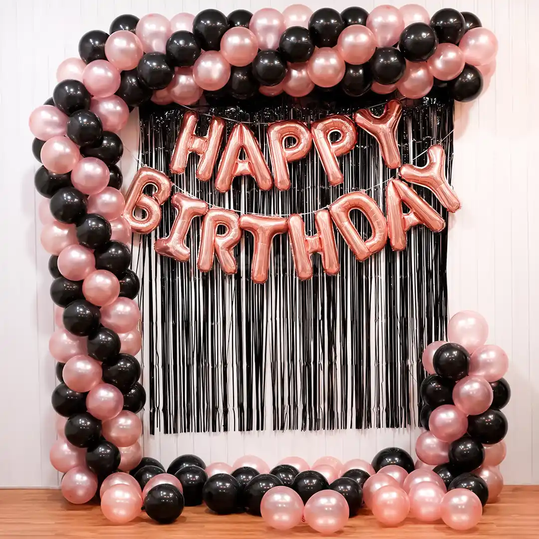• We want to give you a birthday party that reflects the boldness and beauty that exists within you, and the perfect way for that is with our Pink and Black Birthday Arch Celebration Décor.