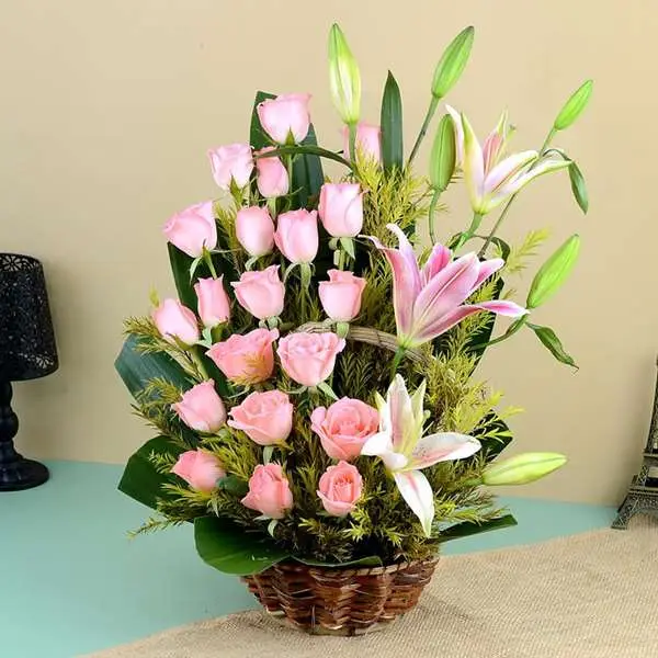 Pretty Pink Bunches in a Basket