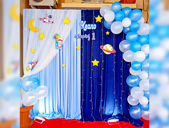 - The decoration is mainly done using balloons along with other creative decoration items.
