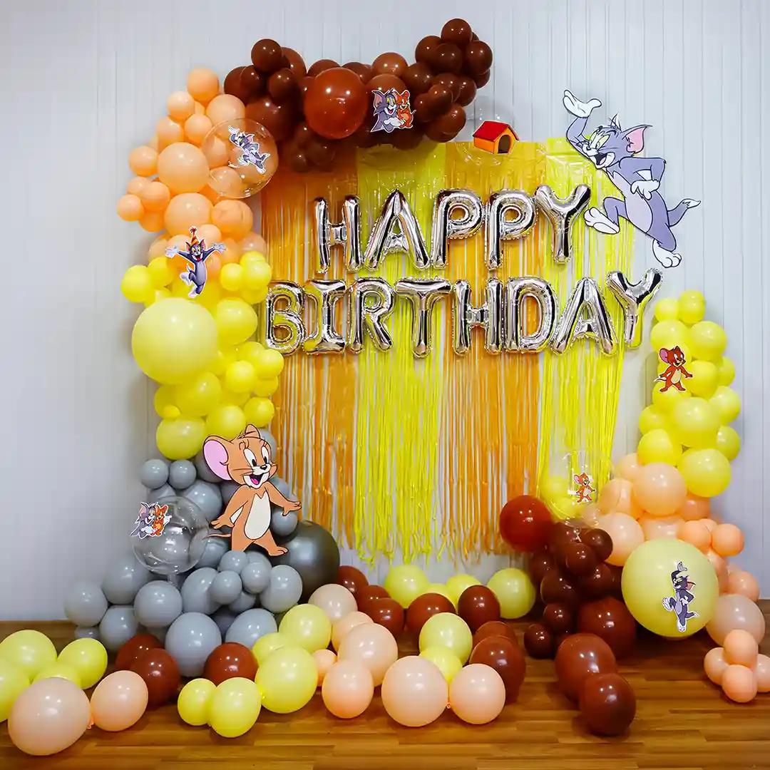 - Simply book this Tom with Jerry birthday decoration online from here. We provide this balloon decor service everywhere in Delhi & NCR.